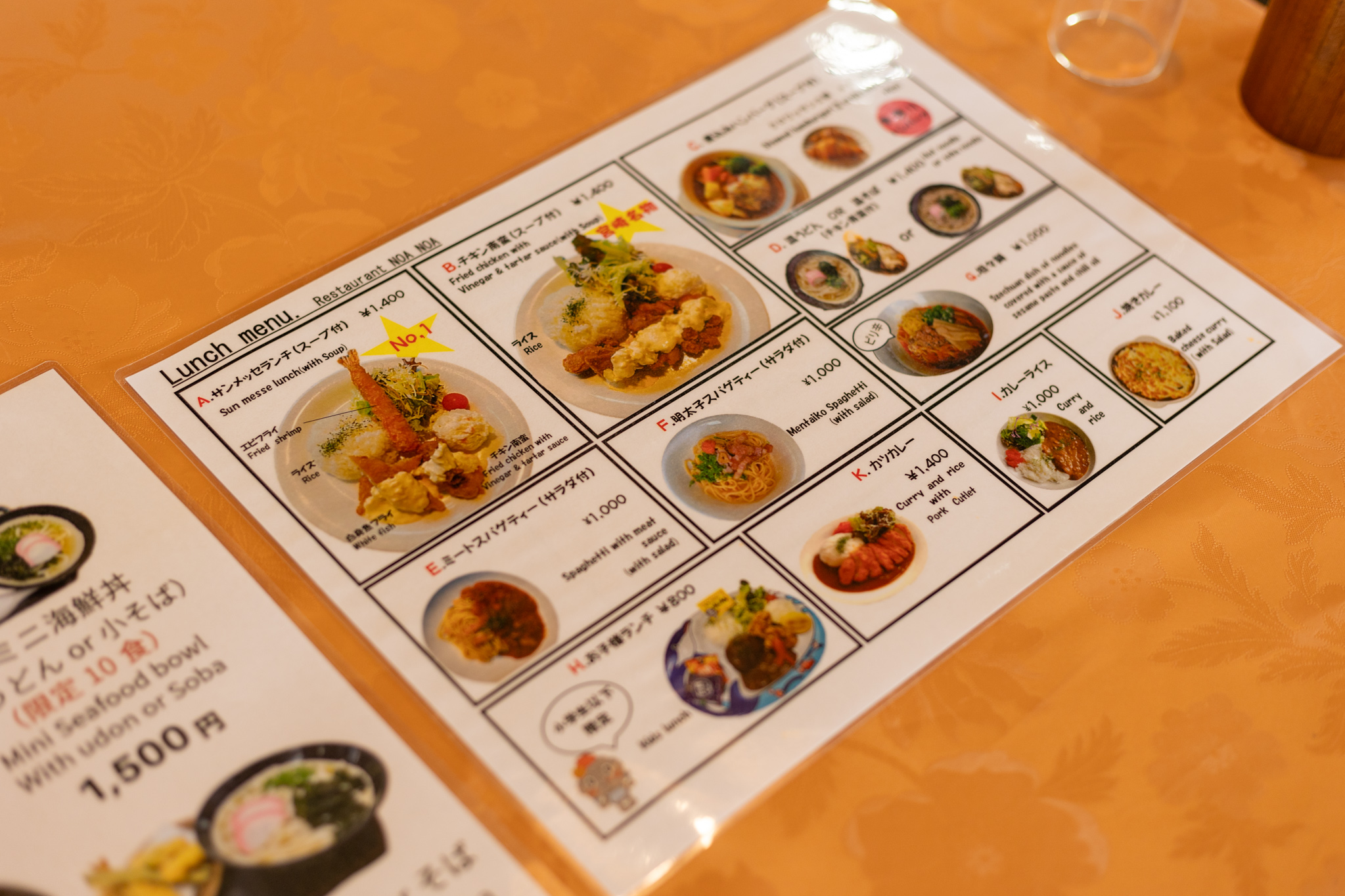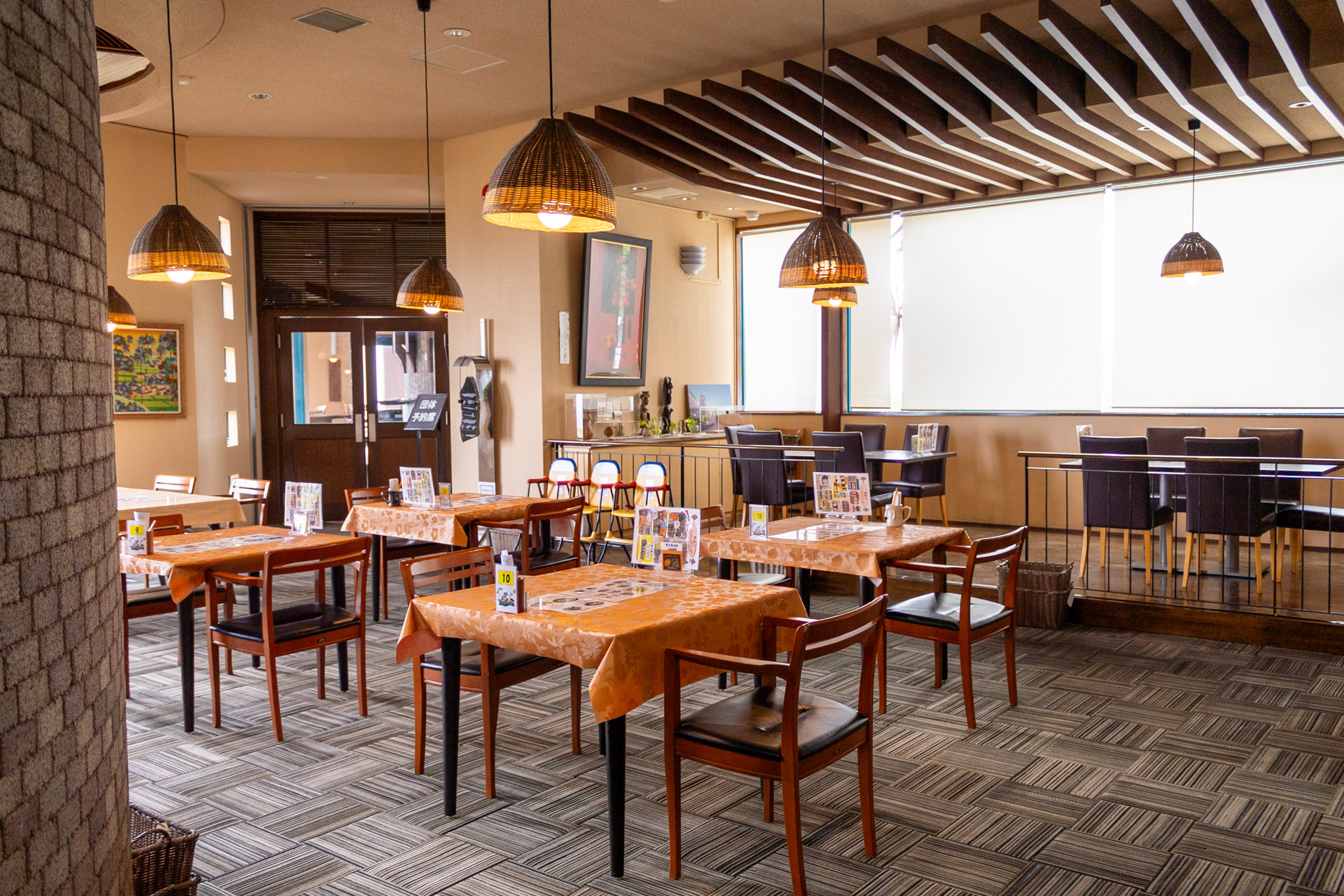 モアイ像からずーっと坂を登って行った先にある南洋レストランnoa・noa。天気のいい日は窓から広大な空と海が望めるレストランです。