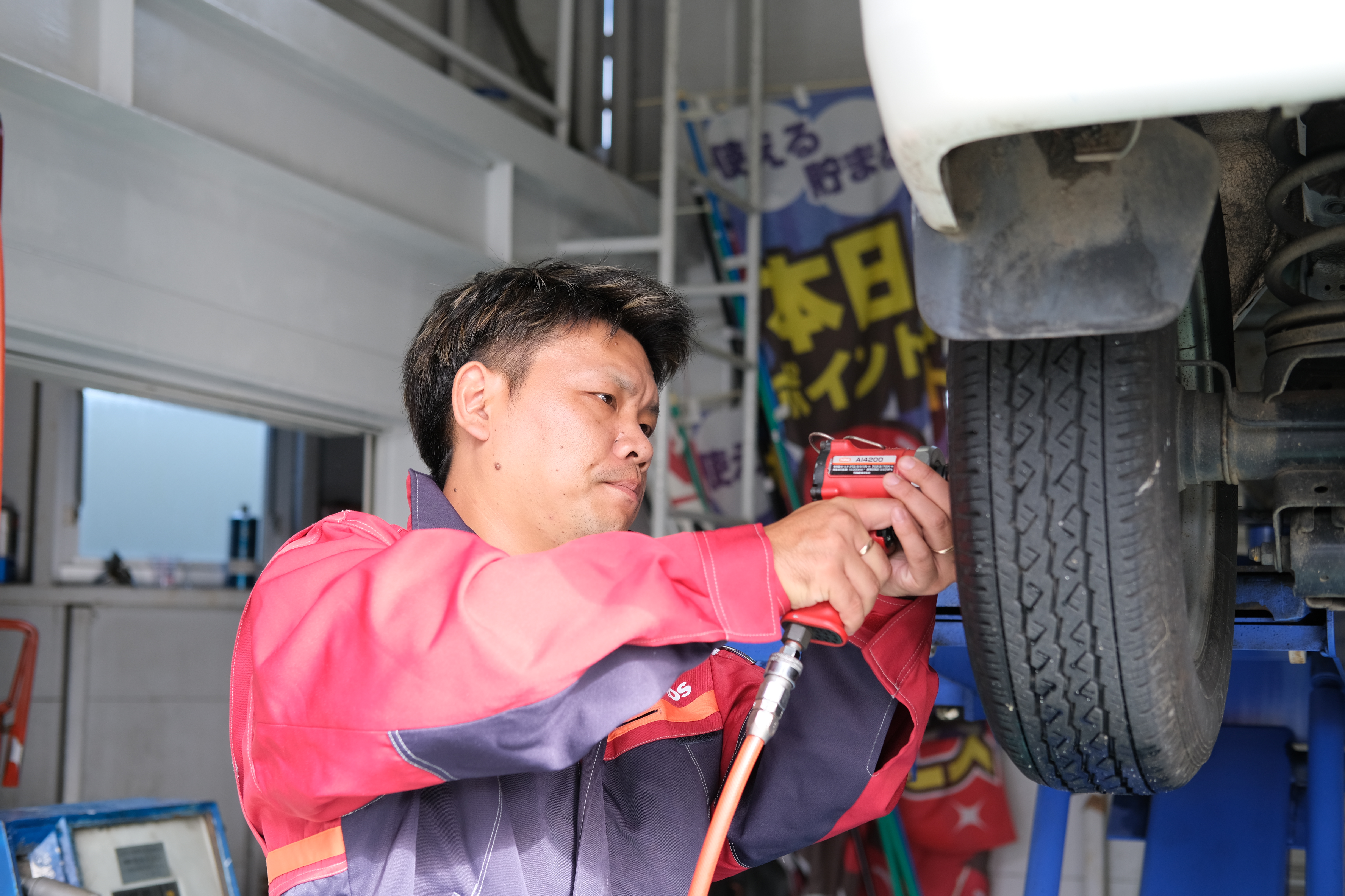 タイヤ交換やコーティング、ご家庭への灯油配達など、車のことから暮らしに関わることまで手がけます。