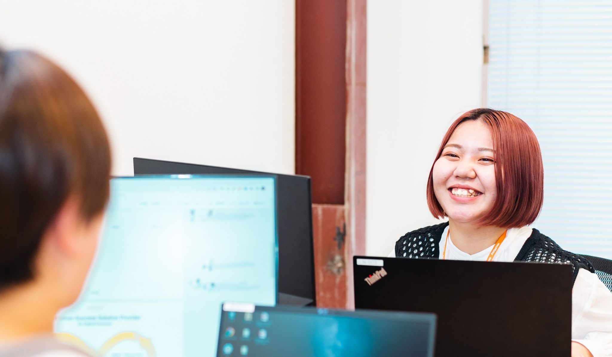 業務は、電話・メール・チャットでの問い合わせ対応を行いながら、リーダーとして「チームの運営」と「人材の育成」を担います。2〜5名で動くチームの中で業務指示やフォローアップを行い、状況に応じて調整を加えながら日々の進行を支えます。また、クライアントとの定例ミーティングに参加し、運営状況の共有や改善点の確認も行います。