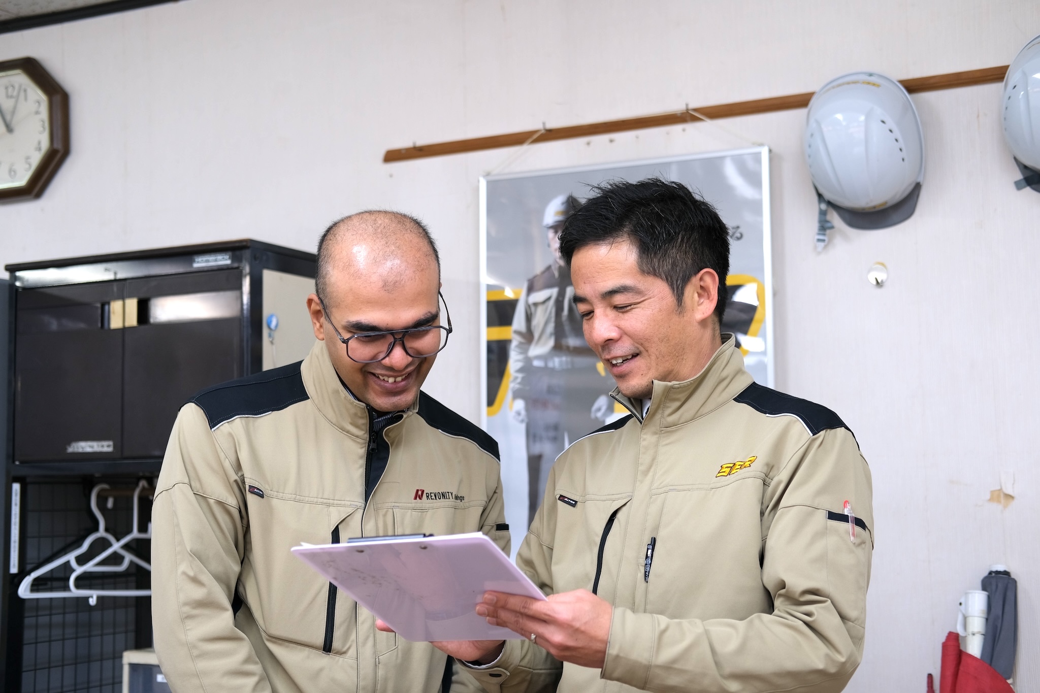 「会社の制度も充実していると思いますが、日南は特に穏やかな人が多いなという印象です。一緒に働く仲間も皆さんいい人たちですよ」と話すのは、1月に日南営業所に異動してきた所長代理の米田(写真右)さん。制度と人のあたたかさが、ここの魅力です。