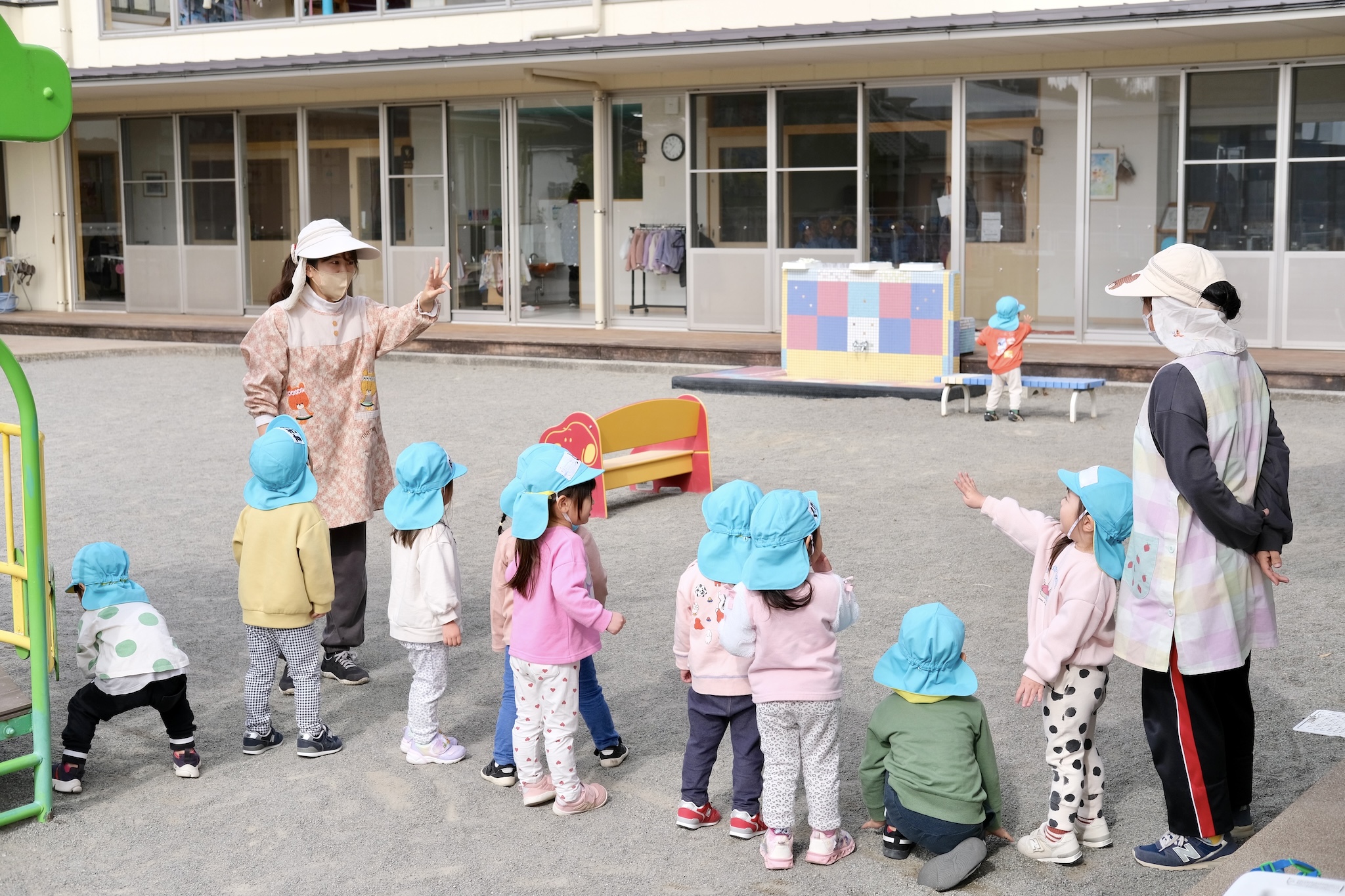 普段の保育では、公園への散歩や芋掘り、海水浴など、自然に触れる機会が豊富です。飫肥城下まつりでの和太鼓披露や、地域ボランティアによる読み聞かせなど、地域の方々との交流も盛んで、子どもたちは多様な経験を積み重ねています。